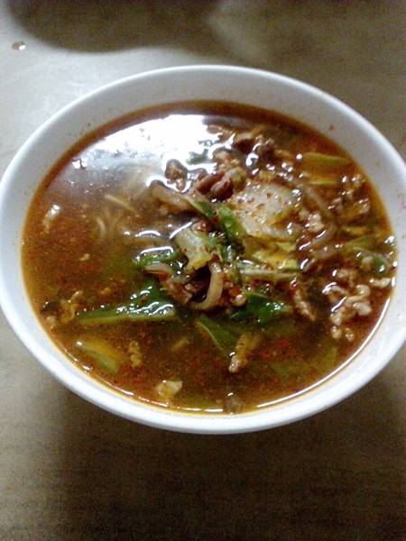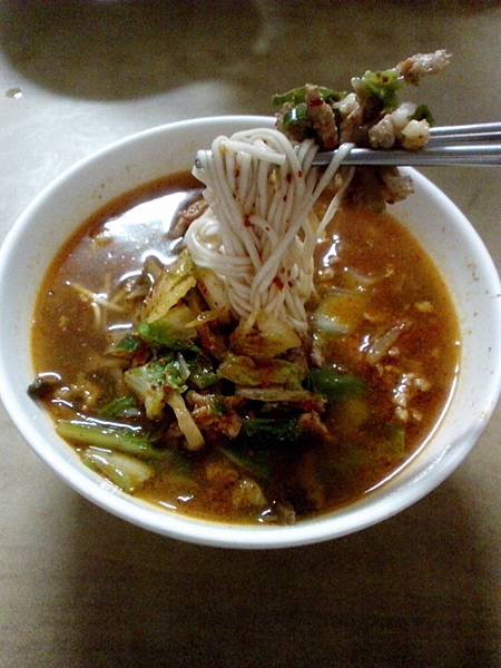 麵碗上的紅油誘人,吸允進口中的麵條口感極佳,恍若是幼年在外省麵館的滋味
